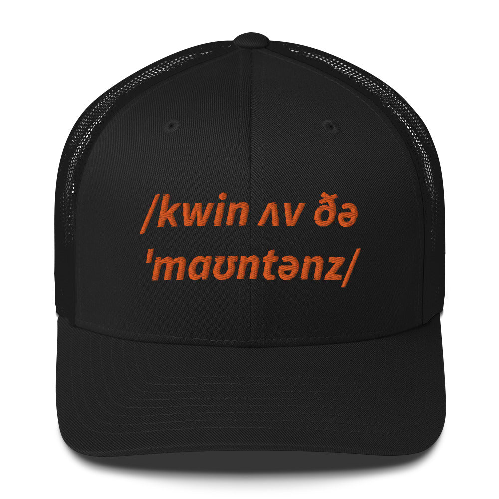 Queen Of The Mountains QOM Truckers Cap, Phonetic Spelling, Adult